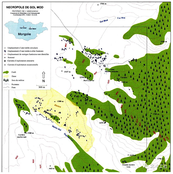 蒙古国、俄罗斯外贝加尔及图瓦地区目前发现的匈奴时期大型墓地有十余处,但是最大型的无疑还是位于蒙古国中部呼尼河右岸的高勒毛都、哈尼河右岸的高勒毛都2号以及乌兰巴托以北的诺音乌拉墓地。其中前两者具有相似的环境和地貌特征,都是位于“松漠”之中;诺音乌拉墓地位于山谷松桦林间。它们的地形都非常隐蔽。