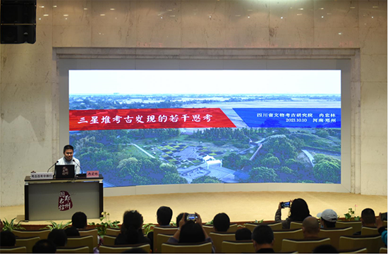 10月10日上午,四川省文物考古研究院三星堆考古研究所所长、三星堆发掘现场负责人冉宏林博士应邀在郑州图书馆为“考古百年中原行”系列公众讲座做特别场报告,题为《三星堆考古发现的若干思考》,郑州大学历史学院副院长、副教授郜向平博士与之进行对谈。