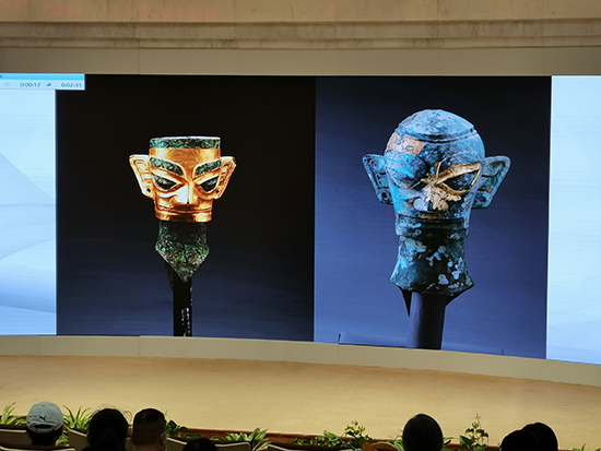 最后,冉所长对三星堆埋藏坑的形成原因进行了推测。坑内堆积均遵循下层放置器物、上层铺陈象牙的固定顺序;坑内出现红烧土、灰烬(经植物浮选,灰烬大多数为竹子)等物质;坑内出土器物体型较小、实心或者较短的器物保存完好,体型较大、空心或者较长的器物破坏较严重,似乎不是人为破坏的特征。根据这些现象,冉所长认为埋藏坑内的器物原来应放置在宗庙建筑内,由于某种自然原因导致房倒燃烧并倒塌,器物被烧坏砸损而难以继续使用,因此三星堆先民将这些器物按照一定的顺序分坑进行掩埋(埋藏过程中可能还有一些祭祀活动),形成了我们现在所看到的祭祀坑。此次事件之后,古蜀文化的中心可能就迁移到了金沙遗址,金沙遗址在年代和器物特征上与三星堆有明显传承关系。