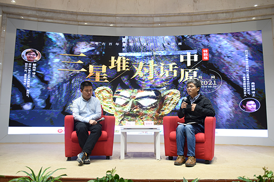 讲座环节结束后,郑州大学历史学院郜向平副院长与冉宏林所长进行对谈,继续探讨三星堆与中原文明的关系。
