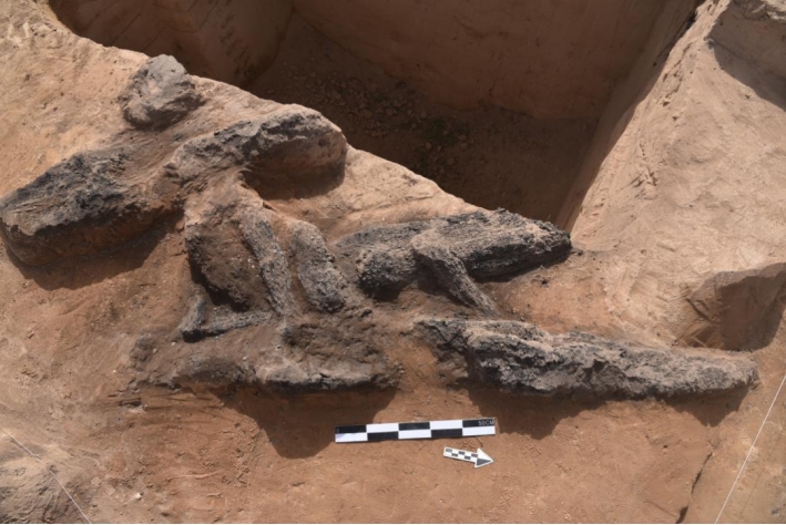 北阳平遗址F2西北角炭化木斜梁及椽木