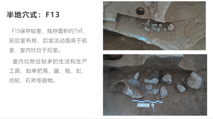 河南省文物考古研究院李晓燕的报告题目是《灵宝城烟遗址和北阳平遗址考古发掘与保护成果》。北阳平遗址位于河南省灵宝市阳平镇北阳平村西约500米处,现存面积约72万平方米。2021年度共发现仰韶时期房址3座,清理2座(F1、F2),清理仰韶灰坑10余座、沟3条,东周墓葬1座。其中,F2规模宏大、结构复杂,居住面加工考究,保存完整,保存的大量种类丰富的炭化木构件,是史前建筑遗存所独有,对于屋顶结构的复原和史前房屋建筑屋架结构的研究有重要价值。灵宝城烟遗址位于河南省灵宝市川口乡城烟村南,2021年发掘共发现各时期灰坑350余座,墓葬近20座,房址约15座,瓮棺近20座、窑址10多座。以仰韶文化早期文化遗存为主,另有不少仰韶中晚期遗存和二里头文化遗存。在发掘区南部一处较大型地面式房址周围分布一圈大型柱洞,推测带有回廊,应为最早的带回廊建筑。G7、G9是仰韶早期的两条壕沟,在其之间有两道平行的墙基(Q1、Q2),墙内外分布有密集的柱洞,部分加工极好,推测应与G7、G9同为防御设施,可能为早期城址的雏形,对文明起源的研究具有十分重要的意义。