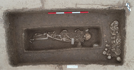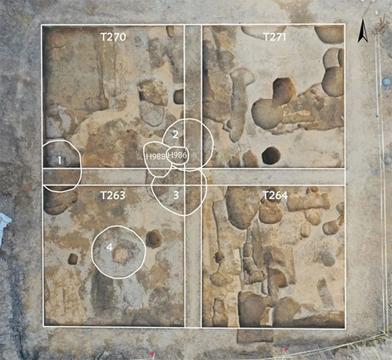 河南省文物考古研究院贾一凡的报告题目是《叶县余庄遗址考古收获与初步认识》。叶县余庄遗址东西长约1600米,南北宽约1400米,面积约100万平方米以上,碳十四测年在2400BC~2000BC之间。为探索早期夏文化,2020年8月至今,河南省文物考古研究院联合平顶山市文物局、叶县文物局对余庄遗址进行发掘。余庄遗址被列入“考古中国·夏文化研究”重大项目,已揭露面积2000余平方米,发现墓葬、灰坑、房址、水井等各类遗迹近300处。其中,中原龙山时期大型墓已发现16座,发掘12座,其方向一致,布局规整,多随葬30件以上器物组合、摆放位置固定的陶礼器,填补了中原龙山文化无高等级墓葬的空白。余庄遗址出现了以礼制为核心的早期文明特征,对研究龙山时期中原地区的丧葬制度、社会复杂化、文化交流与融合以及早期夏文化具有十分重要的意义。