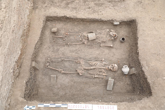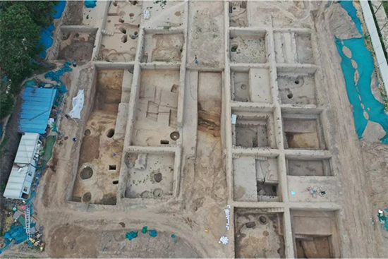 安阳市文物考古研究所孔维鹏的报告题目是《2021安阳市陶家营商代中期聚落遗址》。陶家营遗址位于安阳市北关区柏庄镇陶家营村北地,初步勘探发现遗址平面呈长方形,东西约560米,南北长约330米,总面积约18.5万平方米。本次发掘区位于遗址的西南部,共布探方21个,面积约2050平方米。清理灰坑、墓葬、壕沟、陶窑、夯土基址、水井等遗迹,初步统计共出土铜器、陶器、玉石器、骨器、蚌器、贝等各类器物约172件。陶家营遗址与南部被认为是商代中期都城的洹北商城同时期,有内、外双重环壕、墓葬、灰坑、陶窑、窖穴、夯土基址等遗存,初步判断是一处具有防御性质的高规格聚落遗址。从文化发展序列来看,上接二里岗上层文化,与白家庄期文化紧密相联。出土文物表明其与同时的北方草原和山东等地文化有相互影响,向下则开启了辉煌的殷墟文化。陶家营遗址的发现进一步丰富完善了商代早期、中期和晚期的文化序列,具有重要的考古价值。