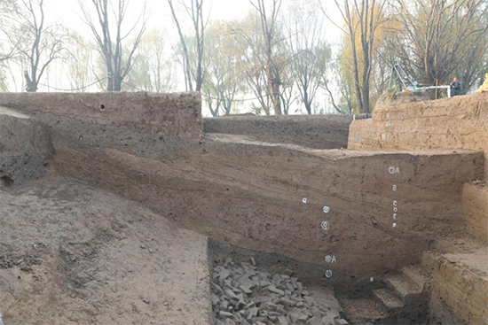 商丘市文物考古研究院孙政委的报告题目是《商丘宋国故城城墙考古发掘收获与初步认识》。2020年度宋国故城城墙考古发掘项目是宋国故城遗址的第二次考古发掘。本次发掘最深处已达5米左右。已经清理掉发掘区城墙两侧的淤土层,完全暴露出城墙连接处顶端,清理出明清墓葬21座、道路1条,揭露出不晚于明代中期的倒塌后的建筑构件、连片的青砖,推测应是城墙包砖。根据出土遗物和地层堆积情况分析:1、城墙因大型洪水废弃,应与文献记载“六月(弘治十五年,即1502年),黄河决口,河水入城,公私廨舍,荡然无存。旧城从此没”相印证。2、城墙在明清时期废弃后,仍有部分保留较高的城墙段,后沦为墓地。3、现存城墙顶部夯土层中多见唐宋瓷片,不见明代遗物,推测宋国故城在唐宋时期经过大规模修筑,被明代沿用,但也不排除明代修筑的城墙被更晚时期破坏。