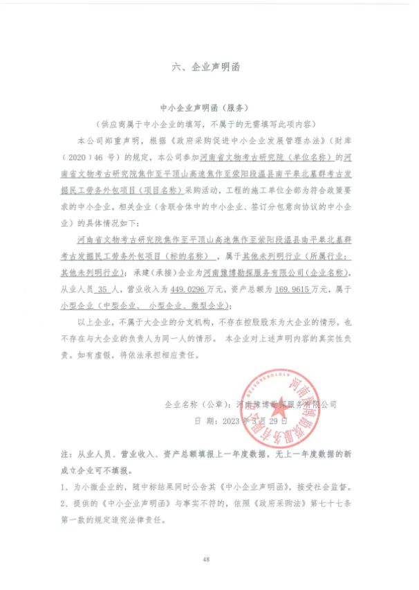 焦作至平顶山高速焦作至荥阳段温县南平皋北墓群考古发掘民工劳务外包 | 河南豫博勘探服务有限公司 | 郑州市中原区建设西路187号15层1511号 | ¥362800.00元 |