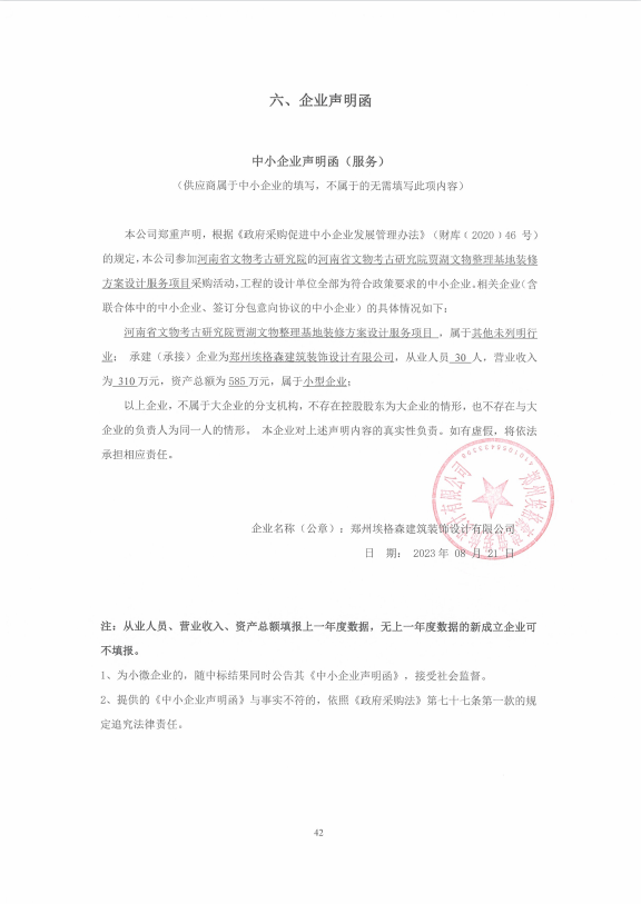 一、采购项目名称:河南省文物考古研究院贾湖文物整理基地装修方案设计服务项目