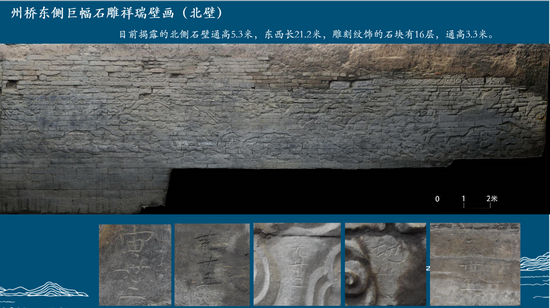 河南大学历史文化学院曹金萍的报告题目是《北宋东京城州桥与汴河遗址》。首先介绍了开封城市的历史沿革、总结了北宋东京城城市考古收获,然后重点汇报了州桥及汴河遗址,揭露的州桥本体乃砖石结构,东西宽30-48米、南北跨25.3米;州桥东侧两岸有巨幅石雕祥瑞壁画,北壁东西残长21.2米,通高5.3米,其中雕刻纹饰部分高3.3米、上下石块有16层。考古证实州桥本体和汴河故道的兴废变迁趋于同步。遗址出土登记遗物6万余件,目前整理已挑选瓷器标本4万余件、铜钱近万枚、动物骨骼约1500斤。遗址采取边发掘边保护边展示边利用,及时开展州桥本体加固修复、汴河河道本体保护加固等文物保护工作。最后总结分享了相关的城市考古工作经验。该遗址被纳入国家及河南省大运河保护规划,获得“2022年度全国十大考古新发现”等多项荣誉。