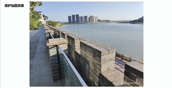 浙江省文物考古研究所崔彪的报告题目是《城市遗产保护中的部门冲突与协调—以浙江兰溪古城墙为例》。浙江兰溪古城墙位于兰江之滨,是兰溪古城最重要的历史标志物,是南方临江型山水城市营造的典型代表。由于抗战期间方便居民的疏散,现保存下来的仅剩沿江的西城墙段,城墙全长800多米,分为三段。由于兰江洪水频发,为保障兰溪民生安全,水利部门计划将城市防洪标准提升至50年一遇,但由于兰溪古城墙本身也是江堤的一部分,文物保护对不改变原状和不影响风貌的要求,使得防洪提升工程在兰溪古城墙段难以实施,与水利部门的防洪要求产生了突出的矛盾。为了使兰溪古城墙得到合理保护的同时不成为兰江堤防的短板,经过文物部门和水利部门的多次协调,制订了一套基于价值认知和科学支撑的兰溪古城墙保护加固方案,与水利防洪提升工程同步实施,实施后对城墙本体和风貌影响较小,也达到了50年一遇的防洪标准,实现了民生安全和文物保护的和谐统一。