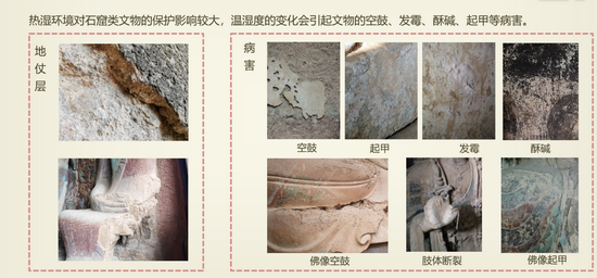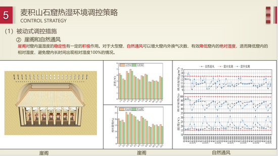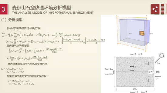 郑州大学建筑学院姚珊珊的报告题目是《麦积山石窟热湿环境现状调查及模拟分析》。麦积山石窟位于甘肃省东南部处于湿润区半湿润区的交接地带,雨季在4-9月,气候潮湿。受潮湿环境影响,麦积山石窟剥落严重,现存洞窟数两百多个,但壁画保存面积仅剩1000多平方米。基于热湿耦合传递理论提出了石窟遗址的热湿环境分析模型,同时采用分析模型讨论了不同因素对洞窟内热湿环境的影响。通过现场监测总结了麦积山三种不同形制石窟热湿环境的变化特征;建立了麦积山石窟全年热湿环境数值模型;量化分析了不同影响因素对麦积山石窟热湿环境的影响;提出了麦积山石窟热湿环境调控策略。