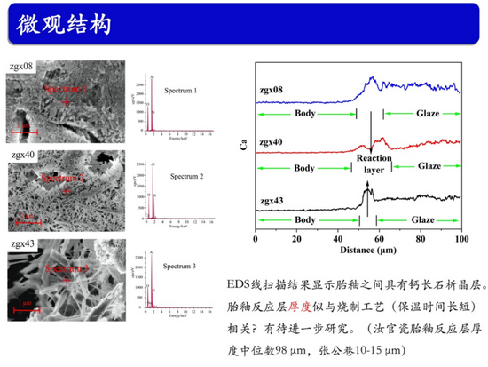 郑州大学考古与文化遗产学院赵维娟作了题为《张公巷窑青瓷的原料特征和烧制技术研究》的报告。通过对张公巷窑青瓷研究背景、原料特征、微观结构和物相、烧制技术的分析,得出研制期张公巷青瓷胎原料来源分散,釉料配方杂乱。成熟期张公巷窑青瓷胎与汝官瓷胎的原料来源不同,前者具有高铝低硅、高钙低铁的原料特征。在釉料配方上,张公巷窑青瓷与汝官瓷有一定的传承关系;清凉寺窑汝官瓷和汝民瓷所使用的胎料基本相同,但它们的釉料配方明显不同。不同釉色张公巷青瓷的烧制温度和烧制气氛相差较明显,张公巷青瓷的玻化程度高,釉面的玻璃质感强。同时,胎釉中间层及釉中的晶相结构及尺寸也影响釉面呈色。
