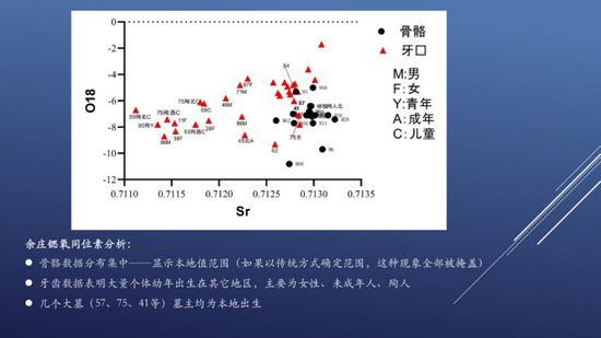 河南省文物考古研究院周立刚作了题为《多种同位素分析打开史前文化交流研究新视野》的报告。。史前文化交流是一个普遍现象,但是目前的研究多限于从器物类型学层面揭示现象,而很少涉及背后具体原因或者交流形式。单一同位素/单一材料分析已经不能满足研究的需要。传统确定本地Sr范围的方法在史前交流活动频繁的区域不适用。多种同位素及成组材料对比分析,能够揭示更深层次人口迁移特征。笃忠遗址多人灰坑葬中至少1人为本地,其他个体来源于不同地区。余庄遗址迁移现象明显,出生于外地者多为女性、儿童、殉人(未成年为主)。瓦店遗址暂未发现明显迁移现象(与其它龙山遗址差异很大)。郝家台遗址曾经发生群体性迁移,女性个体幼年生活区域较远。该报告的分享为研究遗址的性质、史前文化交流途径、人群结构等提供新视角。