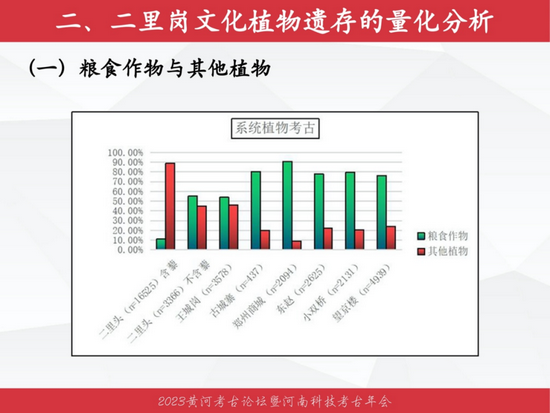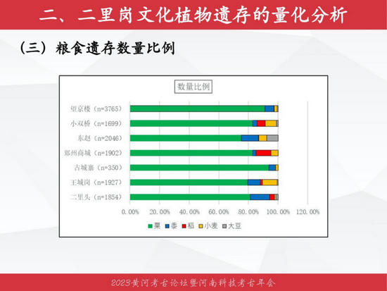 郑州师范学院历史文化学院郭荣臻作了题为《河洛地区二里岗文化农业复杂化的考古观察》的报告。通过对河洛地区二里岗文化植物考古工作的回顾与梳理发现,在二里岗文化先民的生业体系里,农业经济以粟为主导、黍和小麦为重要组成、稻和大豆占据一定比重的作物性食物资源利用状况可能是时人农业种植体系的反应,其他植物性食物资源的利用也在先民生活中发挥作用,对二里岗文化与社会强势发展有所贡献。与同时期的海岱地区部分遗址的五谷利用与生产相较,本区小麦资源的重要性更强,大豆资源的重要性略弱。
