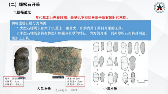 绿松石制品最早见于中原地区裴李岗文化,至仰韶文化半坡类型时期也有系统发现,可见绿松石的使用相对集中,主要集中于我国鄂豫陕绿松石矿区周边,但遗址之间数量差异明显,可能与早期绿松石的开采使用策略密切相关。不过,目前出土亚腰形石锤的阮家坝遗址和伍相庙遗址中却很少见到绿松石制品,其原因需要进一步思考,但这些石锤的出现为我们理解早期绿松石矿等矿业遗存的开采和使用提供了重要线索。