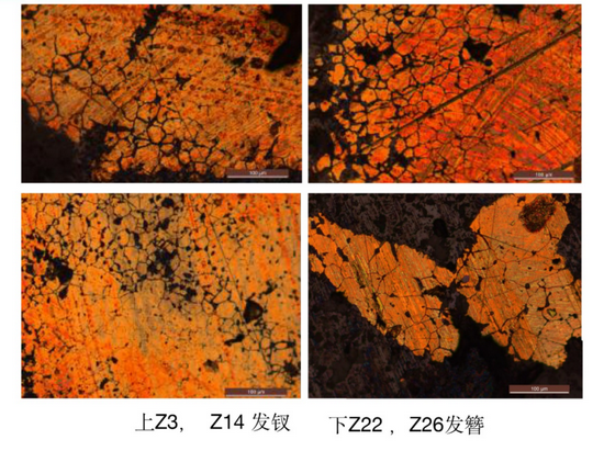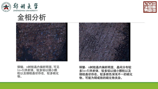 郑州大学考古与文化遗产学院姚智辉作了题为《几件馆藏黄铜件的分析与探讨》的报告。研究者借助扫描电镜和金相显微镜对馆藏9件黄铜件进行成分半定量分析和组织观察,ICP-MS进行微量、痕量元素的定量分析。9件样品时代包括汉代、元代、明代和清代,器类为发簪和耳勺。其中8件为Cu-Zn合金,1件为Cu-Zn-Pb三元合金,与其他时代黄铜饰件杂质较少不同的是,清代的4件样品中含有微量镍和铁等元素,推测这和使用锌矿石有关。组织观察发现9件样品中的3件铸造和2件热锻器物均为清代,其余4件为低温锻造。明清时期,锻、铸同时存在。器件属于同一类炼制黄铜技术,制作工艺也可不同。这批黄铜件中微量元素镉的规律,与黄铜钱币规律一致又略有不同,研究者对此现象进行了初步探讨,微量元素定量分析也为印证黄铜件的年代提供了旁证。