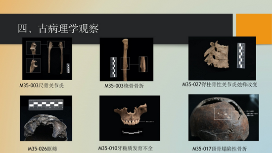 河南省文物考古研究院王煜作了题为《贾湖遗址第八次发掘出土人骨的健康状况》的报告。通过对贾湖遗址第八次发掘墓葬的体质人类学研究。初步研究结果表明,贾湖古代居民死亡年龄段主要集中在壮年期,平均死亡年龄30.28岁。其中男性平均死亡年龄31.11岁,女性平均死亡年龄28.33岁。贾湖男性居民平均身高达到176.27厘米,远超前七次发掘出土人骨的平均身高,可能反映出该墓区人群的营养状况更高一些。骨骼上的病理表现形式有肢骨骨折、颅骨凹陷性骨折、骨膜炎、骨关节炎、施莫尔结节等。严重的口腔疾病反映出贾湖居民糟糕的口腔健康状况。此外还发现可能与特定习俗有关的颅骨枕部变形、拔牙和颅骨切割现象。贾湖遗址第八次发掘位于遗址中心区,随葬数量多、规格高,该区域人骨的身高、患龋率远超过前七次似乎也反映出这一点,表明当时可能在墓葬等级和分区上已有了一定程度的分化。