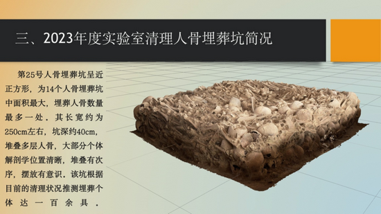 河南省文物考古研究院闫琪鹏作了题为《唐开元寺遗址人骨埋葬坑 2023 年度的清理与研究》的报告。该遗址埋葬坑均为短时间一次性埋葬行为,人骨规整、层层叠压,至少存在近千余个体。对M42、M25进行了逐层逐个体清理及初步人口学研究,尝试探索该人群大规模死亡及埋葬的原因。对个体进行了最小个体数、性别、死亡年龄鉴定工作。个体年龄多为青年、壮年、也有部分婴幼儿个体。病理现象主要为非致命性疾病与创伤。推断该人群为非正常死亡,初步推测与唐代中晚期中原地区的灾疫现象密切相关。