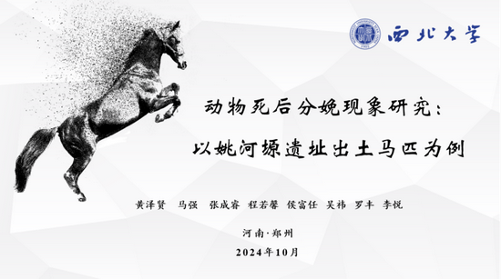 西北大学黄泽贤作了题为《动物死后分娩现象研究:以姚河塬遗址出土马匹为例》的报告。死后分娩(postmortem delivery),也称棺内分娩(coffin birth),是指当母体死后,胎儿因受腹腔内腐败气体压迫而被压出尸体外的非自然分娩现象。目前已发表了一些考古遗址中人类死后分娩现象的研究,但除古代人类外,考古遗址中其他胎生动物死后分娩的现象则鲜有报道。该报告对姚河塬遗址二号车马坑中一匹中老年母马和一具马胎儿的性别、年龄、出土位置、头向和埋葬季节进行细致分析,认为马胎儿的妊娠期不少于9个月,是母马在较为温暖的春末夏初时“死后分娩”,此次研究成果是西北大学李悦副教授带领的动物考古团队与宁夏文物考古研究所、美国哈佛大学等单位合作完成,是首次发表的考古遗址中动物“死后分娩”现象。这个案例的发现得益于动物考古学者参与田野发掘和葬马提取工作,在发掘现场及时记录和保存相关资料,为了解西周时期姚河塬遗址马匹的利用管理策略和随葬制度提供了独特的视角,对未来开展田野考古发掘和动物考古研究具有借鉴意义。