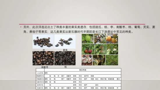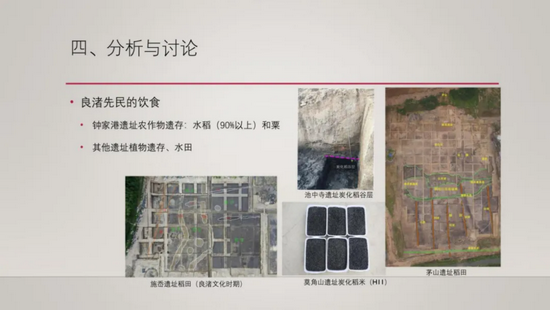 浙江省文物考古研究所武欣作了题为《浙江杭州良渚古城钟家港遗址植物遗存研究》的报告。钟家港河道是一条贯穿良渚古城南北的重要的古河道,2016-2018 年浙江省文物考古 研究所分段对河道进行了考古发掘。钟家港中段和南段的土壤样品浮选结果显示,水稻是本次浮选获得数量最多的植物遗存,同时还有少量的粟和桃、李、南酸枣、甜瓜、枣等果实类及稗、狗尾草等杂草类遗存。少量粟和枣的发现更进一步丰富了区域新石器时代晚期南北交流和旱作农业的证据。结合浙江汉代之前各遗址的植物遗存情况,推测至迟在良渚文化晚期,浙江地区形成了以稻作为主体、多种作物并存的种植业结构。此外,钟家港中段良渚晚期稻米尺寸变小可能是由社会变革导致,说明遗址的植物遗存也能在一定程度上反映良渚古城的兴衰。