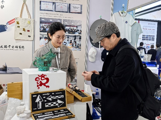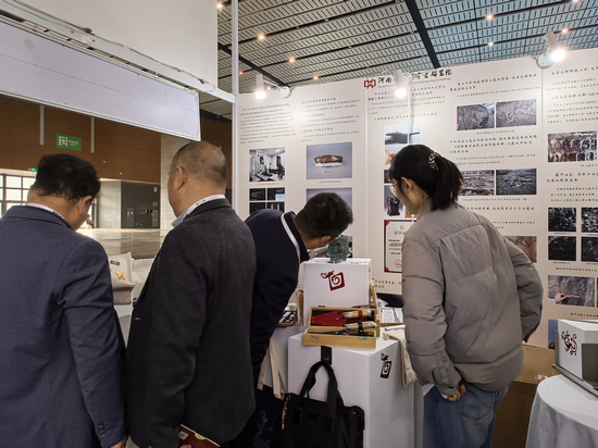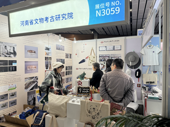 另外我院自主设计研发的40余款文创产品也在展会中进行展出,这些手提包、手提袋、徽章、钥匙扣、棒球帽、窗花、手账本和T恤等均以考古元素为创意基础,设计新颖,打破了观众对传统考古严肃又神秘的印象,更让他们深刻感受到河南考古在文物活化利用方面的热情与创意,展现了我院考古文化的多元魅力,现场气氛热烈,众多观众慕名前往打卡参与集章活动。