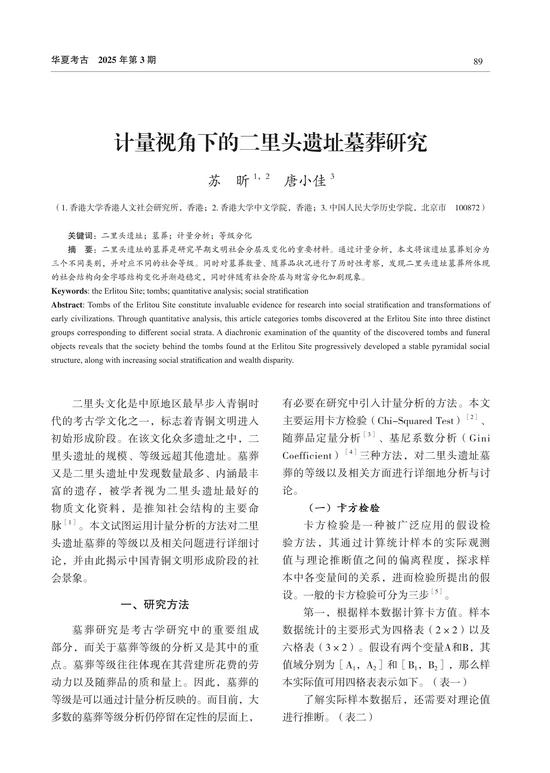 华夏考古2025年第3期|计量视角下的二里头遗址墓葬研究