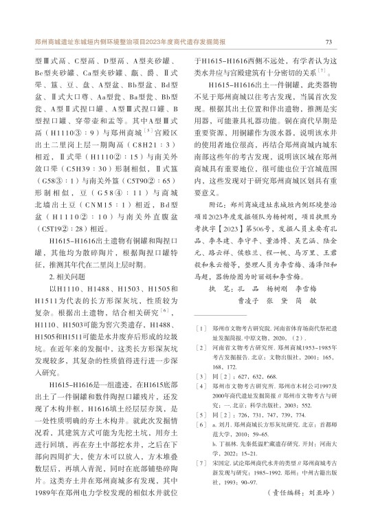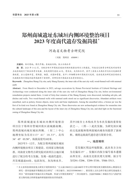 郑州商城遗址东城垣内侧环境整治项目 2023 年度商代遗存发掘简报