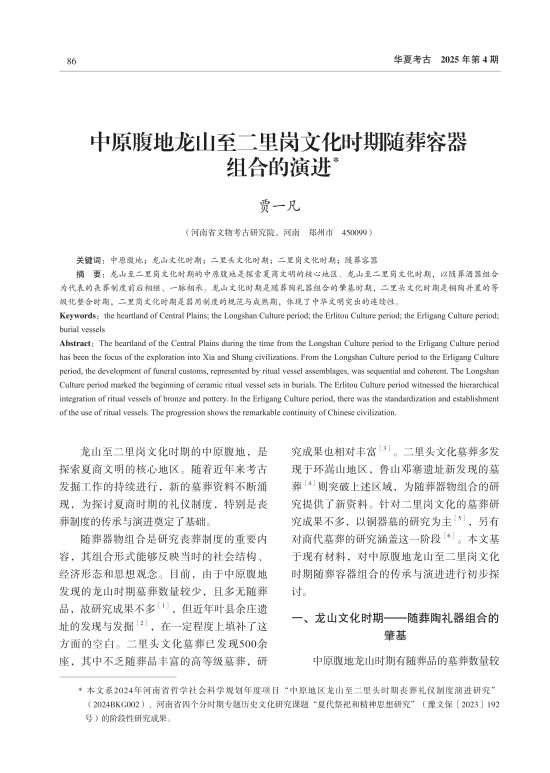中原腹地龙山至二里岗文化时期随葬容器组合的演进