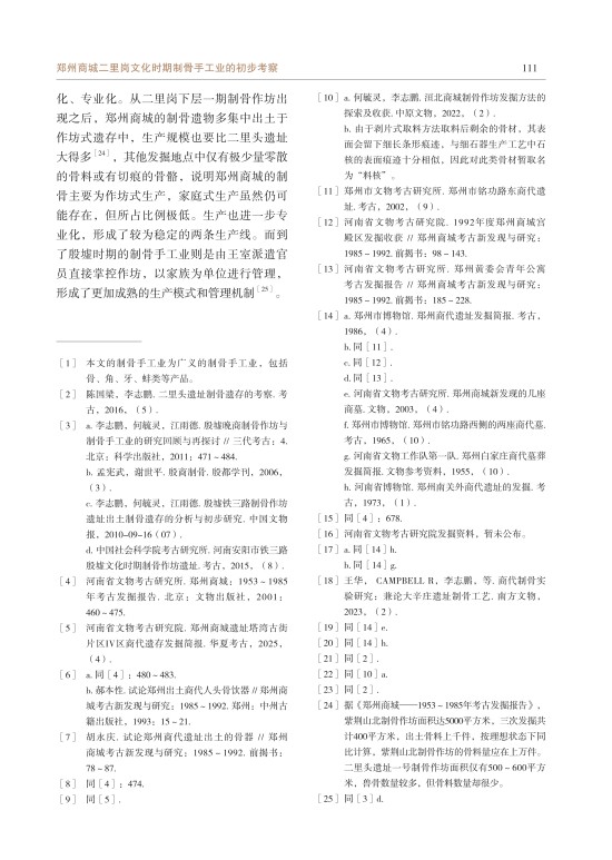 郑州商城二里岗文化时期制骨手工业的初步考察