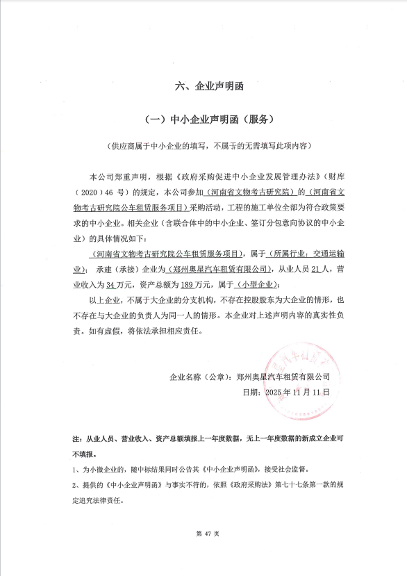 一、采购项目名称:河南省文物考古研究院公车租赁服务项目