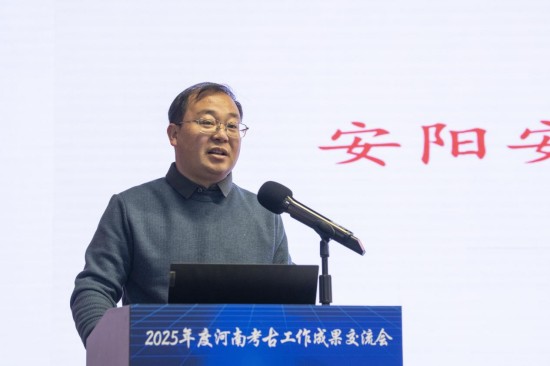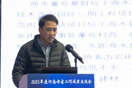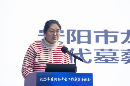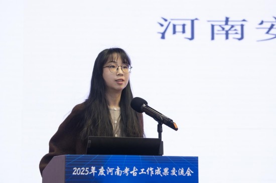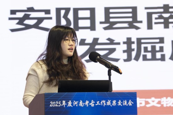 安阳市文物考古研究院孔淑萍作了题为《安阳县南务商代遗址发掘成果汇报》的报告。2021年以来,河南省文物考古研究院和安阳市文物考古研究院已在安阳东部区域先后发现多处商代遗存。2025年,在安阳县南务东南地发现中商遗存,包括灰坑、竖穴土坑墓和水井等。其中用于祭祀的灰坑7个,出土的动物骨骼包括羊、牛、猪和狗。此次发掘共出土陶器、铜器、骨器和石器等各类遗物230余件。陶器种类包括鬲、罐、簋、觚、爵等。通过与洹北商城遗址典型陶器对比,初步推测此处遗存属于中商时期,主体年代当为洹北商城中晚期。祭祀坑及较多卜骨、卜甲的发现,证明商代都城外围二、三级聚落也存在较频繁的祭祀活动。本次发掘为深入探讨豫北地区洹河流域商文化发展,以及中商时期的聚落布局、社会变革等提供了新材料。