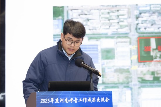 中国社会科学院考古研究所安阳工作队李潇檬作了题为《2025年安阳殷墟(武官北地)考古收获》的报告。为进一步理清殷墟的规模、布局及功能区划,近几年中国社会科学院考古研究所安阳工作队主要在洹河北岸开展勘探工作,寻找道路、沟渠等遗迹现象。已探明洹河北岸存在三横四纵商代道路网络,构成该区域都城空间的骨干框架。结合以往殷墟考古成果,可确认大邑商都城的道路分宽、中、窄三级,可称为干道、街、巷。