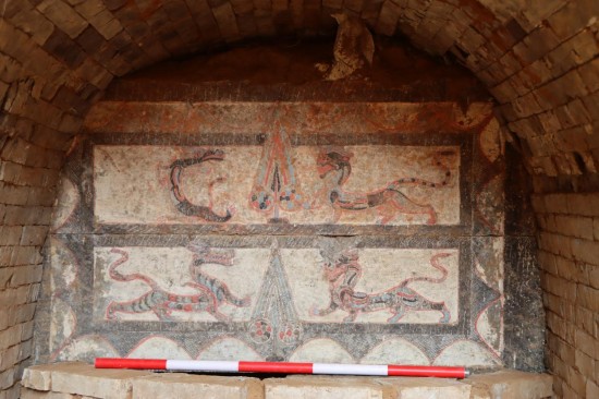 郑州航空港区东汉墓内彩绘门楣