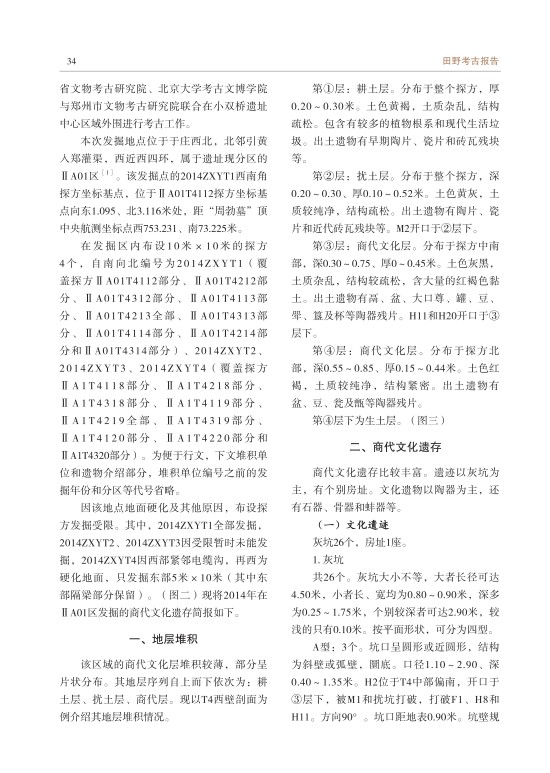 郑州小双桥遗址 2014 年ⅡA01 区商代遗存的发掘