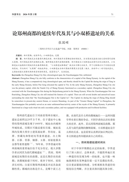 论郑州商都的延续年代及其与小双桥遗址的关系