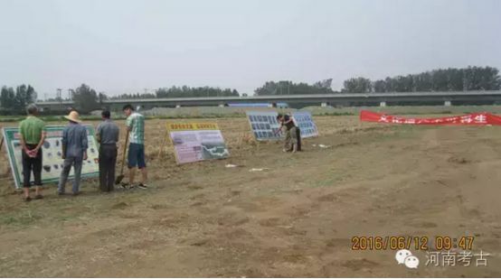 中国文化遗产日期间,考古队在发掘现场摆放宣传版面,悬挂宣传横幅,向当地群众宣传普及文物保护知识,营造了全民共同参与保护文化遗产的良好氛围。