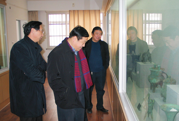 2004年1月16日河南省文化厅副厅长崔为功(左二)视擦文物标本室