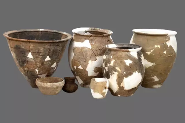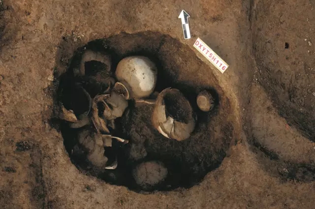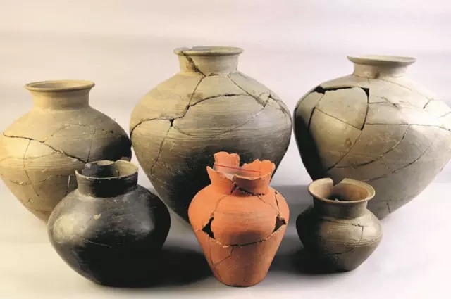 发现的遗迹类型有壕沟、房址、灰坑、墓葬、瓮棺葬等,出土的器物类型有陶器、骨器、石器等。
