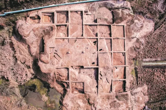 郑州大学陈钦龙选报。遗址位于南京江宁区秣陵中庄,由郑州大学协作南京市考古研究所发掘。2016年发掘面积3000平方米。整个遗址地层北高南低,呈坡状倾斜堆积。东南遗址边缘地层最深,遗物较为丰富。遗址的主体部分在北侧,后期的取土对遗址破坏较大。地层主要分为三大地层:黄土层、灰土层和红土层,分别为倒塌堆积、使用堆积和建造堆积,主体时代为西周早中期至春秋早期。遗址主体为典型的湖熟文化遗存,发现灰坑(沟)4个、灶1座、柱洞150个。其中四个一组的柱洞共18组,还发现有石堆(料石坑)4处,并出土兵器陶范1件,推测这类柱洞与手工业遗存相关。出土陶器以夹砂红褐素面鬲为主,少量泥质陶罐、原始青瓷豆和印纹硬陶。还有发现有少量的石器和铜工具等。