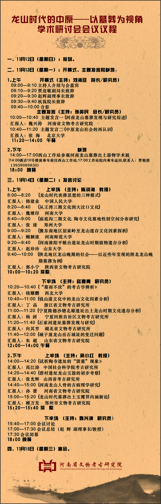 “龙山时代的中原——以墓葬为视角”学术研讨会会议议程