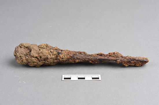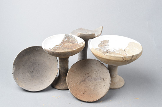此次发掘共清理东周、两汉及清代时期的灰坑、灰沟、水井、道路、房基、陶窑、墓葬等遗迹283处,其中灰坑221座、灰沟21条、灶4座、房基2座、水井12眼、墓葬15座、道路3条、石砌水渠一段、陶排水设施2处及陶窑址2座。出土大量的青砖、筒瓦、板瓦等建筑材料残块,陶瓮、罐、盆、壶、豆、甑等容器,陶权、纺轮、石臼、磨石、铜镞、铁矛、铁锸、铁镢等生活用品,以及“蚁鼻”、“五铢”、“货泉”、“大泉五十”等铜钱。