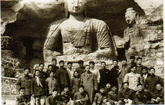 考古班同学一起与宿白老先生(后排右七)在云岗石窟合影