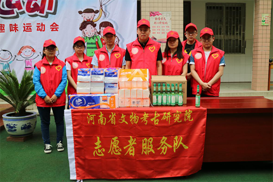 在炎炎夏日,河南省文物考古研究院的志愿者给孩子们送来了卫生纸、花露水等生活用品,院办公室主任韩朝会表示,当大家得知要来辅读学校和孩子们一起进行活动,都争相报名,这些爱心物品只是我们的一点微薄之力,希望能给孩子们在生活上带来一些帮助。