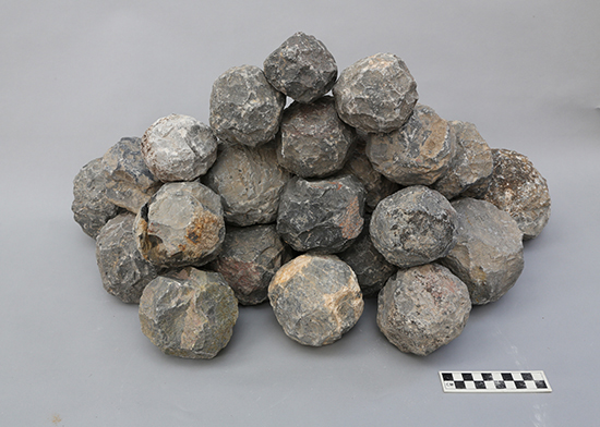 ↖顺天门遗址内出土宋金时期的礌石(摄影:魏成龙)
