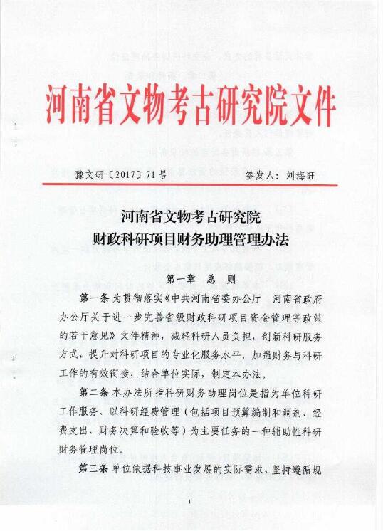 河南省文物考古研究院财政科研项目财务助理管理办法