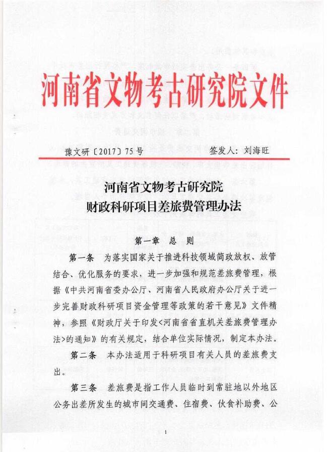 河南省文物考古研究院财政科研项目差旅费管理办法