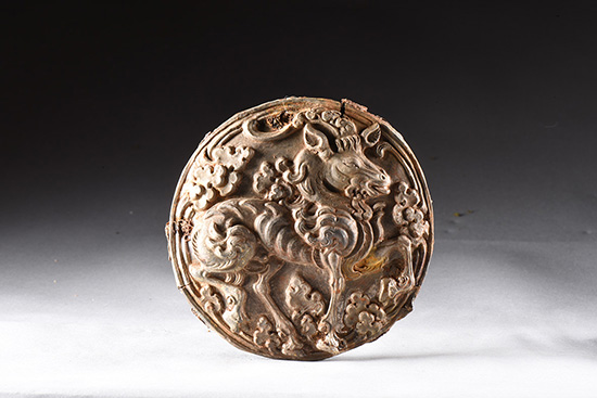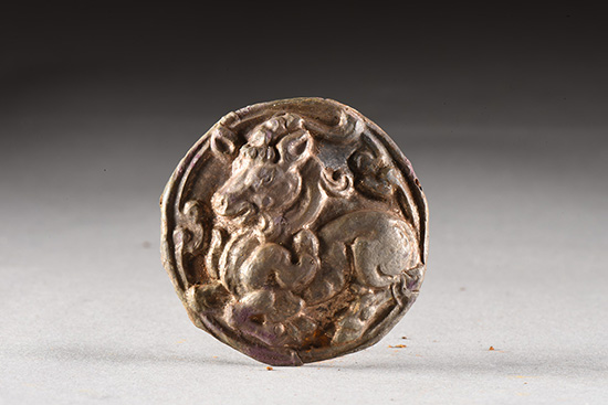 随葬品主要位于棺椁之间和棺内,有金、银、铜、铁、玉、石、陶等各种质地,包括容器、车马器、棺饰等多种器型。椁室内出土陶器6件、铜鍑1件、银马饰30件、金片5件。铜鍑器表有布痕,器物内部有动物骨骼,可能是马骨。马饰为铁胎包银,上有独角兽等动物形象。