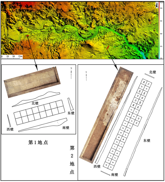 第1、2地点发掘区高程、布方位置及探方平剖面图
