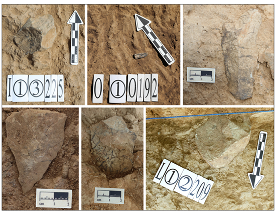 通过对石制品初步分析,并结合发掘区地层堆积情况,遗址大致分3层,上层为旧石器时代晚期文化层即细石器文化层,仅发现少量地层,地表可见大量磨圆度较好、风化严重的砾石,其中夹杂动物化石和加工精致的细石器;中层为旧石器时代中期文化层,为致密的浅色黄土,土质较硬,有大量石制品和少量动物化石,石制品有石核、石片、尖状器、刮削器等;下层为旧石器时代早期文化层,有手斧、Songoan型手镐和砍砸器等。