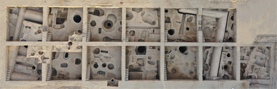 创新街小学(北校区)改扩建项目拟建区域位于郑州市东大街紫燕华庭小区北侧,属于郑州商城遗址二类建设控制地带范围。本次考古发掘工作一期计划发掘4000平方米。自2019年9月开始进场试掘,目前已布设探方23个,发掘面积2300平方米。当前,发掘工作尚在进行中,已发掘深度约1.2-2.7米,发现有商、战国、汉、隋、唐、宋、明清时期的灰坑、沟、水井、灶等各时期的遗迹,其中,灰坑464座、沟15条、水井12座、灶17座及墓葬1座。