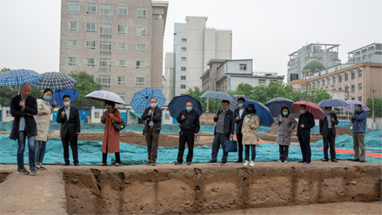 与会专家现场听取了项目发掘单位河南省文物考古研究院考古工作成果汇报并对现场进行了详细的考察,主要针对目前发现的唐宋时期遗存进行讨论,指导遗迹的性质判定和保护方案的制定,并对下一步的考古工作提出建议。